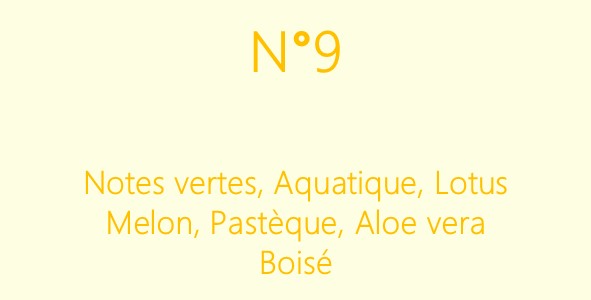 Disponible en 9 fragrances exclusives, numérotées de N°1 à N°9, cette collection vous invite à découvrir une palette olfactive variée – des notes florales délicates aux accords boisés profonds, en passant par des senteurs fraîches et modernes.